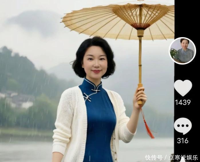 杜新枝这边沉迷AI自拍,看这张照片像老杜吗?这是老杜新发的作品,一身蓝旗袍外套开衫白色褂,齐耳短发,一手提着一个旅行箱,一手撑着一个木把的平盖伞,伞把上还拴着一个红绳。看老杜行走的方向,还不是沿着台阶上或者下,而是意欲向另一个方向转身。作品配了一首歌曲《珊瑚颂》,老杜说喜欢这首歌。
